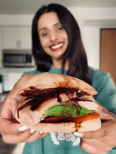 This Buffalo Cashew Mozzarella Caprese Sandwich is a bold, plant-based twist on the Italian classic! Creamy homemade cashew mozzarella, fresh basil, and juicy tomatoes are layered on toasted ciabatta, then drizzled with a spicy buffalo balsamic glaze that packs a tangy kick. Every bite is cheesy, zesty, and completely dairy-free—perfect for anyone craving comfort food with a gourmet edge. Whether you’re looking for a satisfying vegan lunch, a fun game-day recipe, or a unique caprese upgrade, this sandwich delivers flavor and texture in every bite. I crave it all the time!
