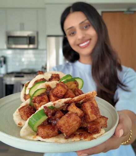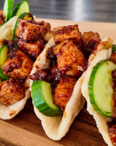 These Korean Glazed Tofu Bao are soft, fluffy buns filled with crispy, high-protein tofu tossed in a sweet and spicy Korean-inspired glaze. Each bao packs around 10g of protein, making it a satisfying plant-based meal you can enjoy for lunch, dinner, or meal prep. The homemade bao dough is simple to make, and the savory gochujang based glaze paired with fresh cucumber adds the perfect balance of flavor and crunch. You can air-fry or bake the tofu for a golden, crispy finish.